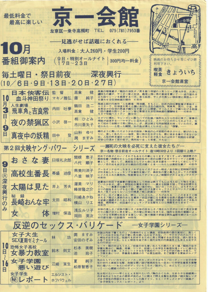 京一会館のオールナイトでやったロマンポルノ特集。